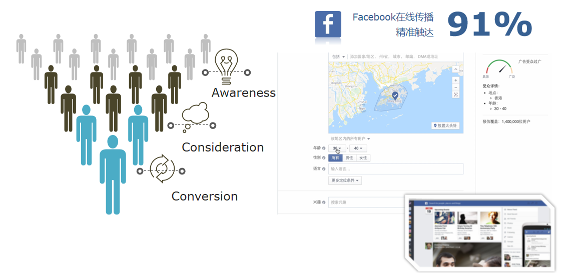 Facebook購買漏斗的不同廣告幫您實現不同目標